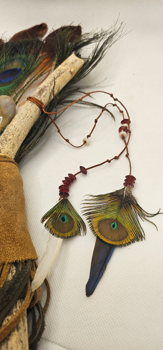 Feather Fan- Sheep Hide, Shattukite (Blue Stone)