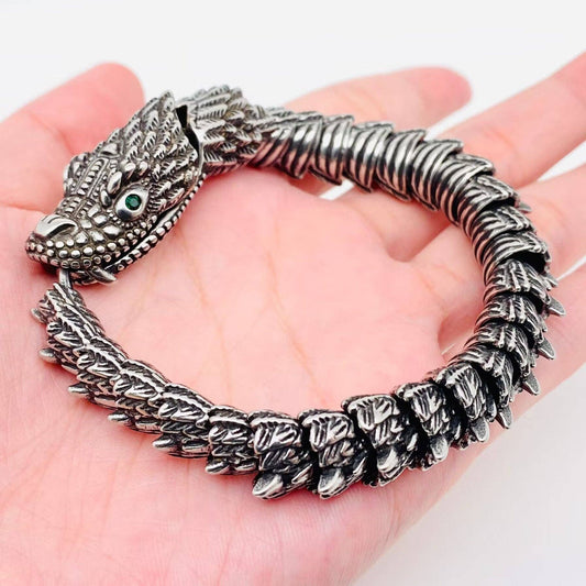 Green Eyes Dragon Bone Retro Stainless Steel Bracelet