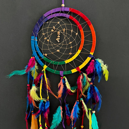 Rainbow Pride Chakra Dream Catcher, Tiger Eye Stone