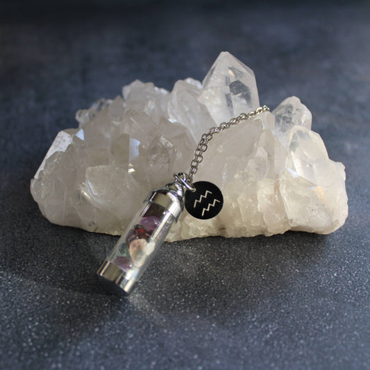 Aquarius Crystal Vial Necklace, Zodiac Astrology Witchy Gift