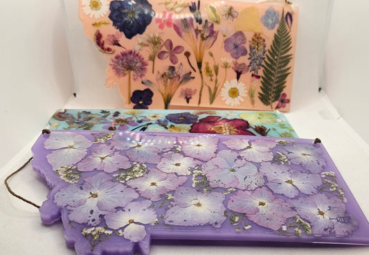 Wildflower Montana Map Wall Hangings, encased in Resin-Made in Montana