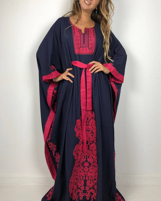 Elegant Navy Blue Butterfly Embroidered Plus Size Kaftan