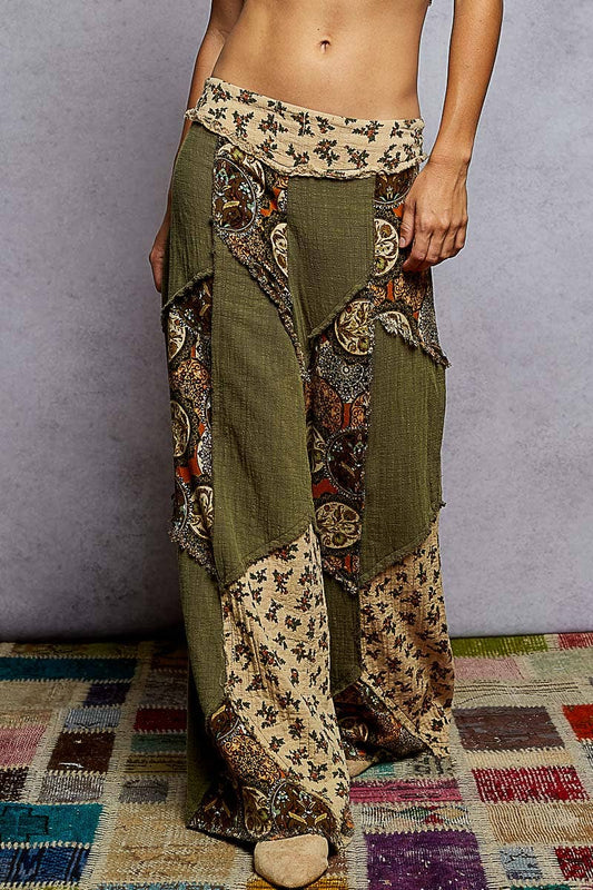 Printed Patchwork Woven Pants S-L