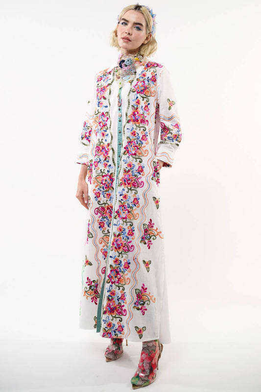 Beauty Mark Embroidered Maxi Duster / Shirt Dress : White /
