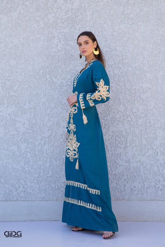 Blue Egyptian cotton kaftan dress, caftans for women, Boho Kaftan dress, Caftans for women, long summer kaftan, kaftans, caftan: S/M/L