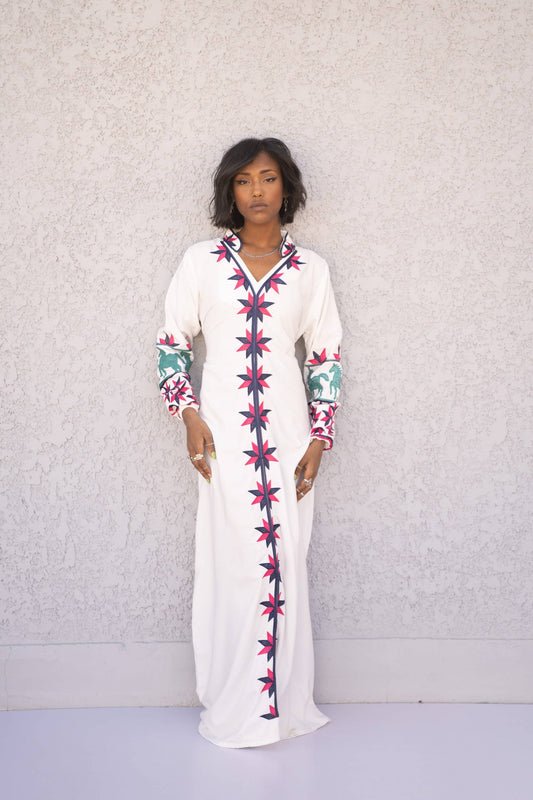 Siwa White Embroidered Cotton Caftan
