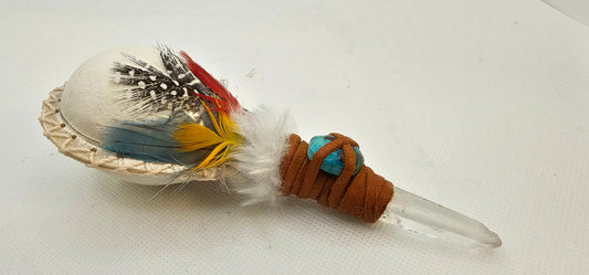 Peru Rattles w/ Crystal Base & Stone with Leather Wrap