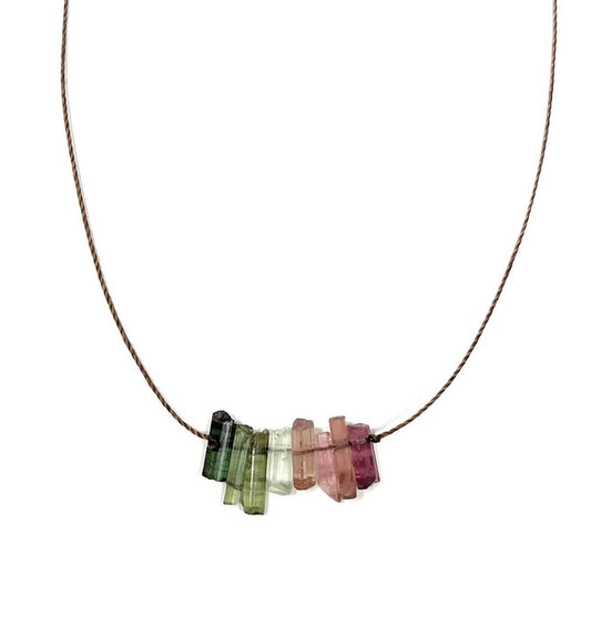 Multi Tourmaline Stick Bar Necklace: 18 or 20"