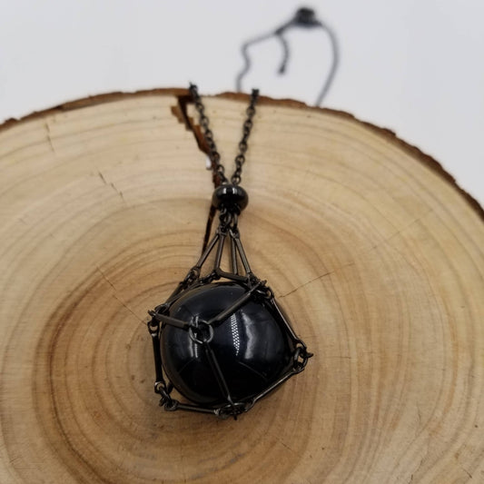 Black Interchangeable Stone Bead Macramé Cage Necklaces
