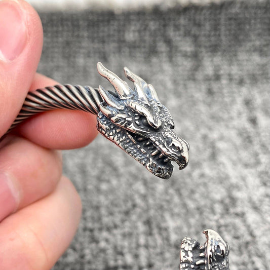 Men's Double Dragon Head Stainless Steel Cuff Bangle