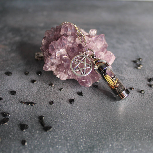 Protection Spell Jar Amulet Necklace,Witchy Crystal Jewelry