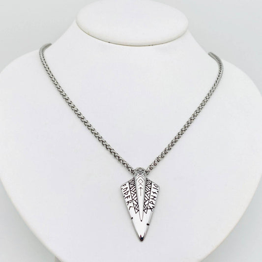 Viking Rune Stainless Steel Arrow Pendant Necklace