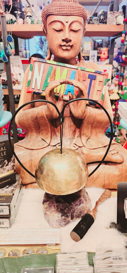 Hanging Bowl on Stone Base with Carved Wood Mallet