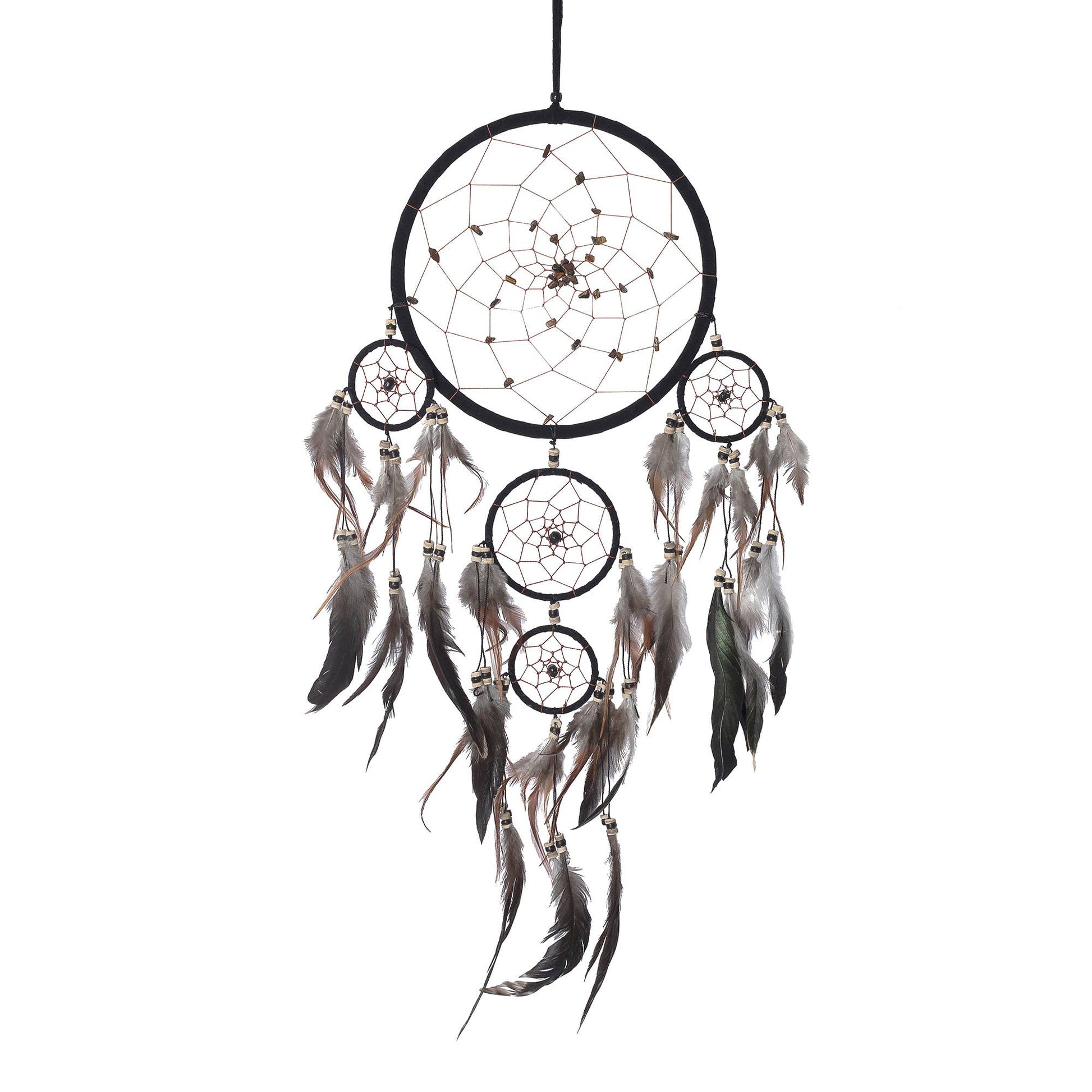 Hand Crafted by artisans using fair trade practices and enhanced with feathers and tiger eye stone, these dream catchers are designed to ward off negative energy and bad dreams to promote a peaceful night. Ancient Native American lore states hanging dream catchers over your bed will ensure a restful environment with positive energy.