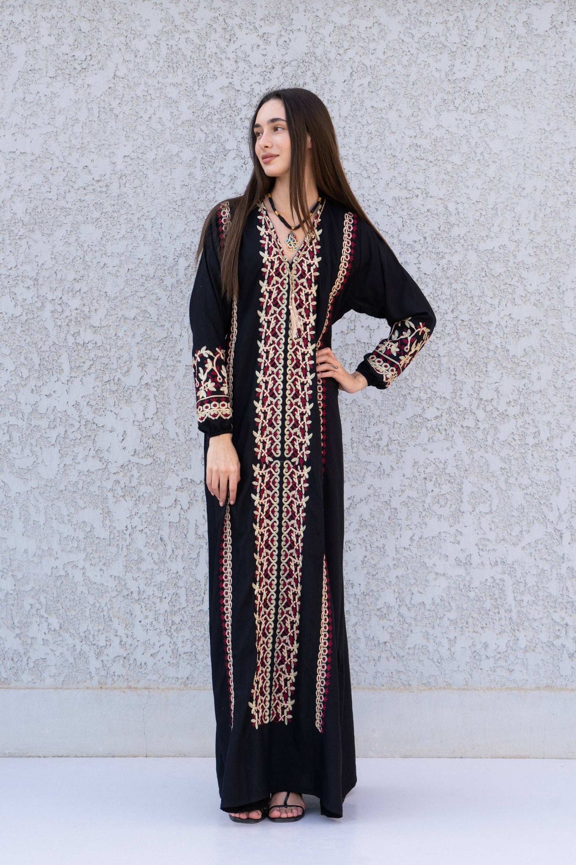 Chic Black embroidered cotton Caftan, caftans for women, Kaftans, embroidered Caftan dress, Caftan maxi dress, Caftans for women, Caftans: S/M/L