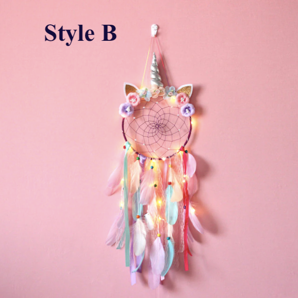 ✧ DETAILS - This Cute Unicorn Dreamcatcher Wall Art is handmade with 100% Pure Cotton. TIPS: You can add LED string light by yourself. It makes the moon hanging gorgeous at night:)