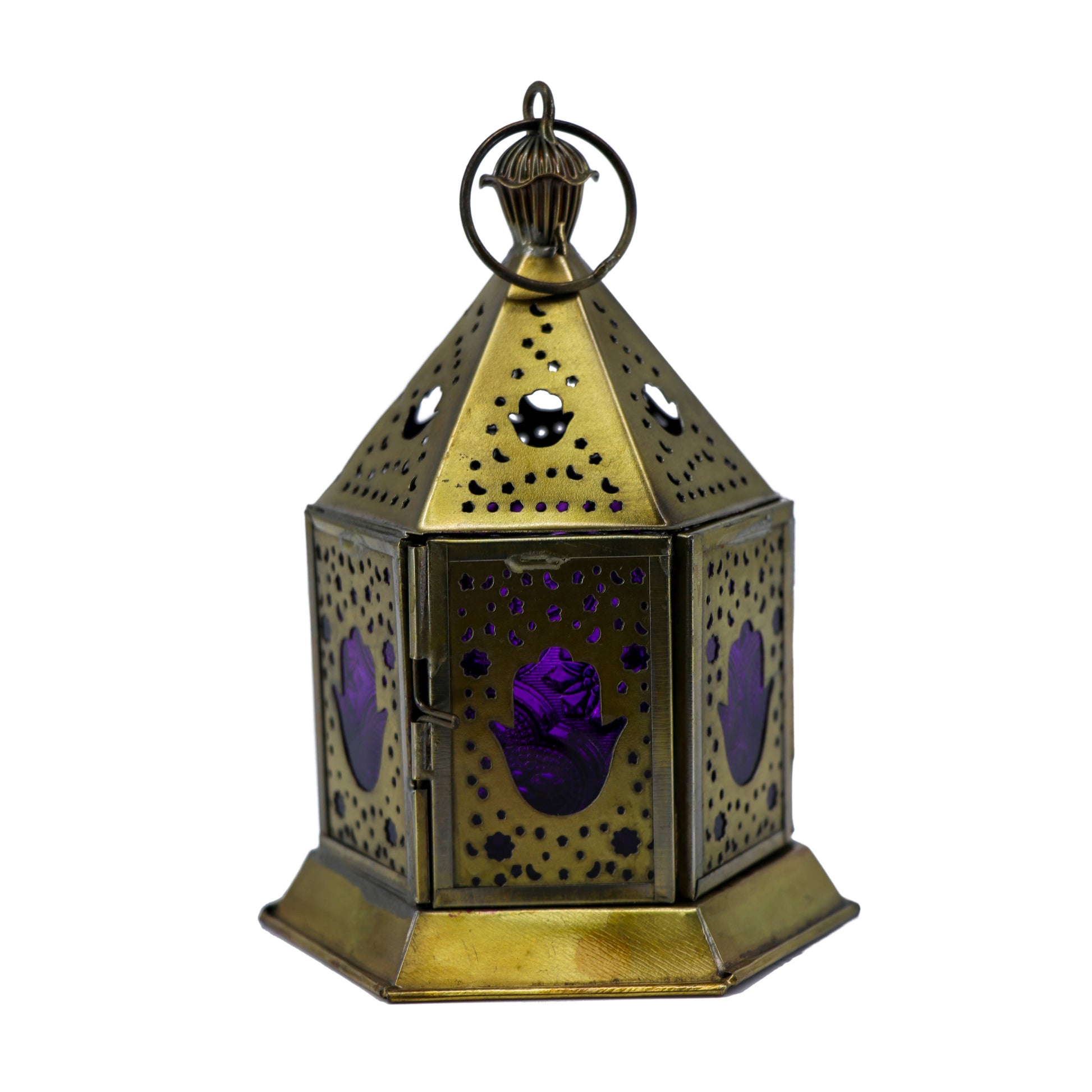 Lantern, Iron and Glass Hamsa, height 6", width 4" length 4"