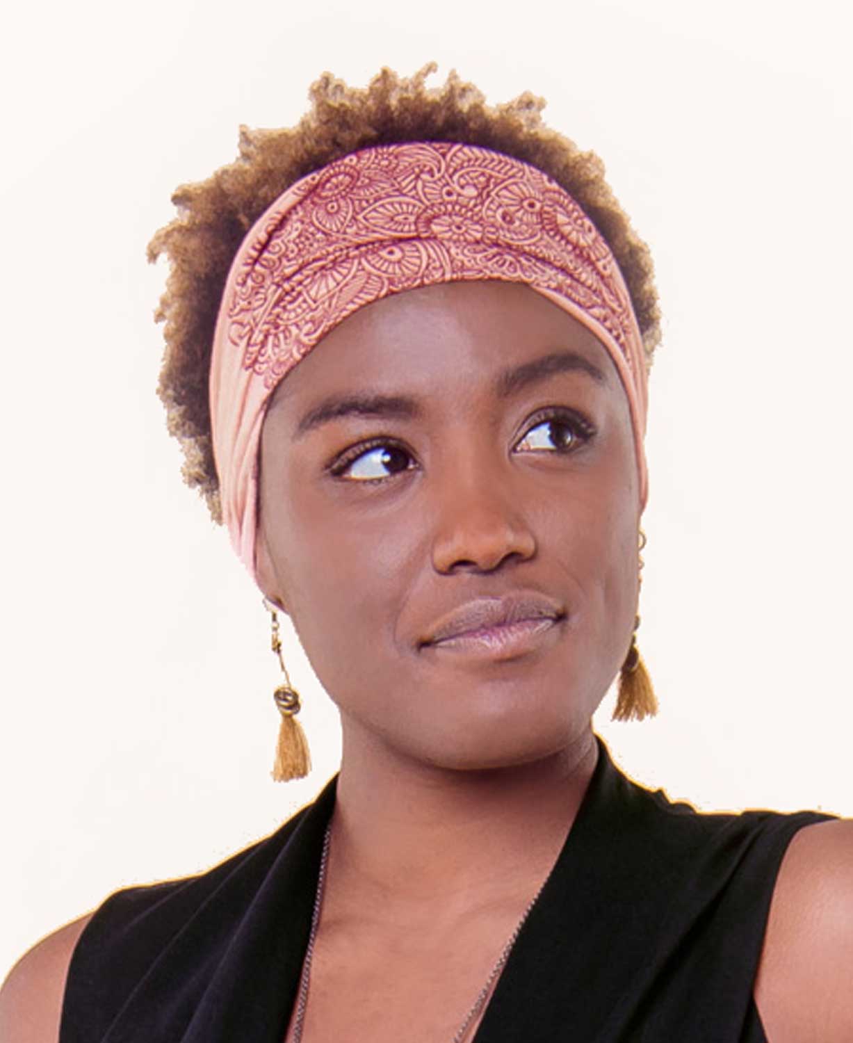 Inspired by Indian art and henna designs, this Mehndi Flowers Boho Headband brings beauty head to toe. You will treasure this unique, decorative boho bandeau headband. Made in the USA. 50% organic cotton, 50% recycled plastic (from recycled beverage bottles). 9 inches wide by 8 inches tall (laying flat) - fabric can stretch from 18 to 26 inches in circumference. Eco Rose.