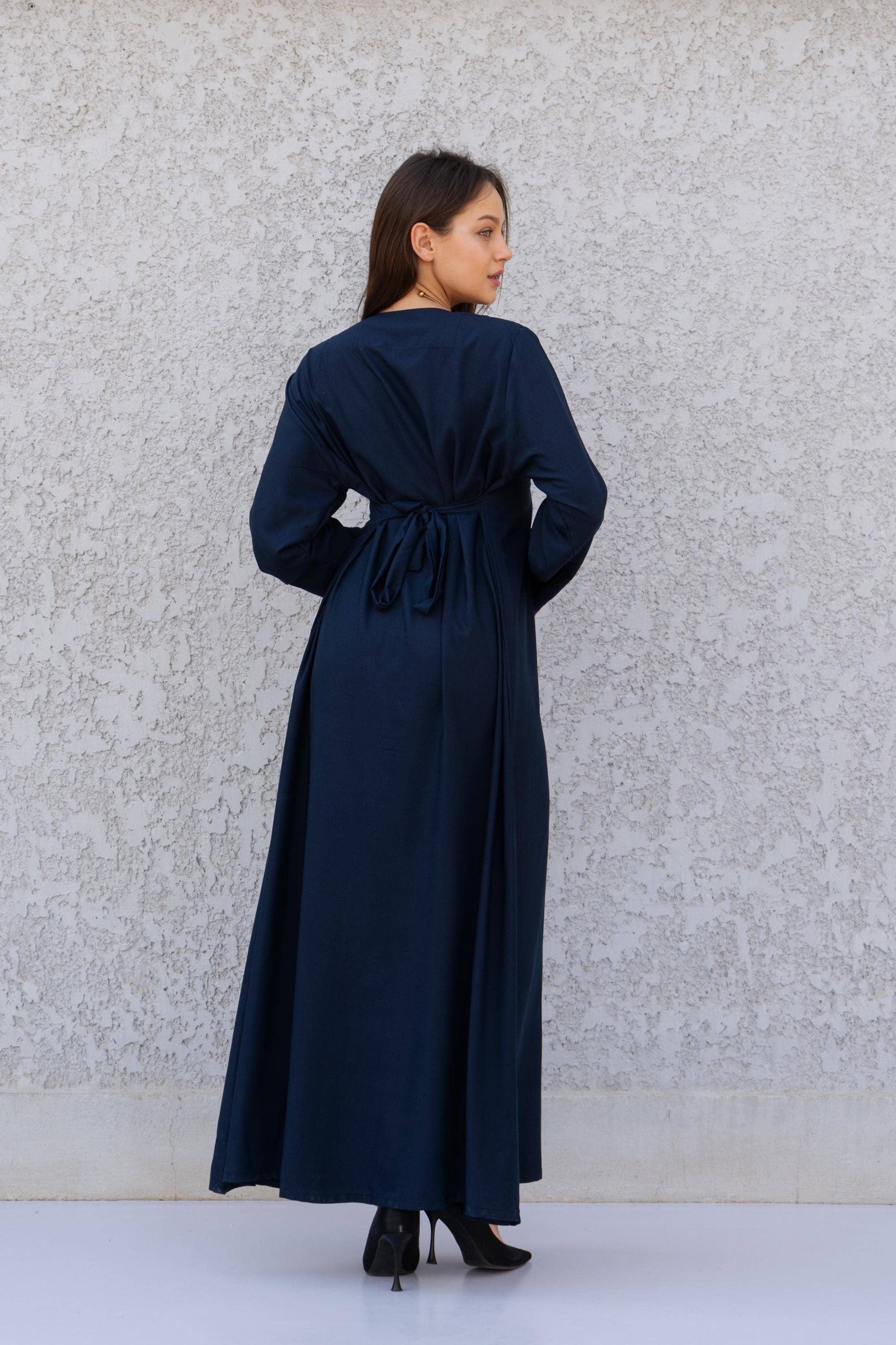 Navy Blue embroidered caftan dress, embroidered Cotton caftan, Chic embroidered caftan, Egyptian cotton caftans for women: S/M/L