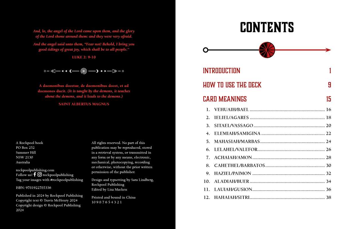 This unique oracle of 72 cards combines both infernal and divine powers, with each card containing the image of one goetic demon and the Kabbalistic angel that rules over that demon. In addition to the drawings of the spirits, their summoning sigils are shown behind them. For ease of reading the astrological meaning of each spirit is printed on the card. Oracle of Heaven and Hell can function much like any standard tarot or oracle deck, however, each card provides both a positive and a negative meaning. These should not be seen as either good or bad but rather as two sides of the same coin or, to borrow from Eastern symbology, as the concept of yin and yang or two parts that comprise a whole.