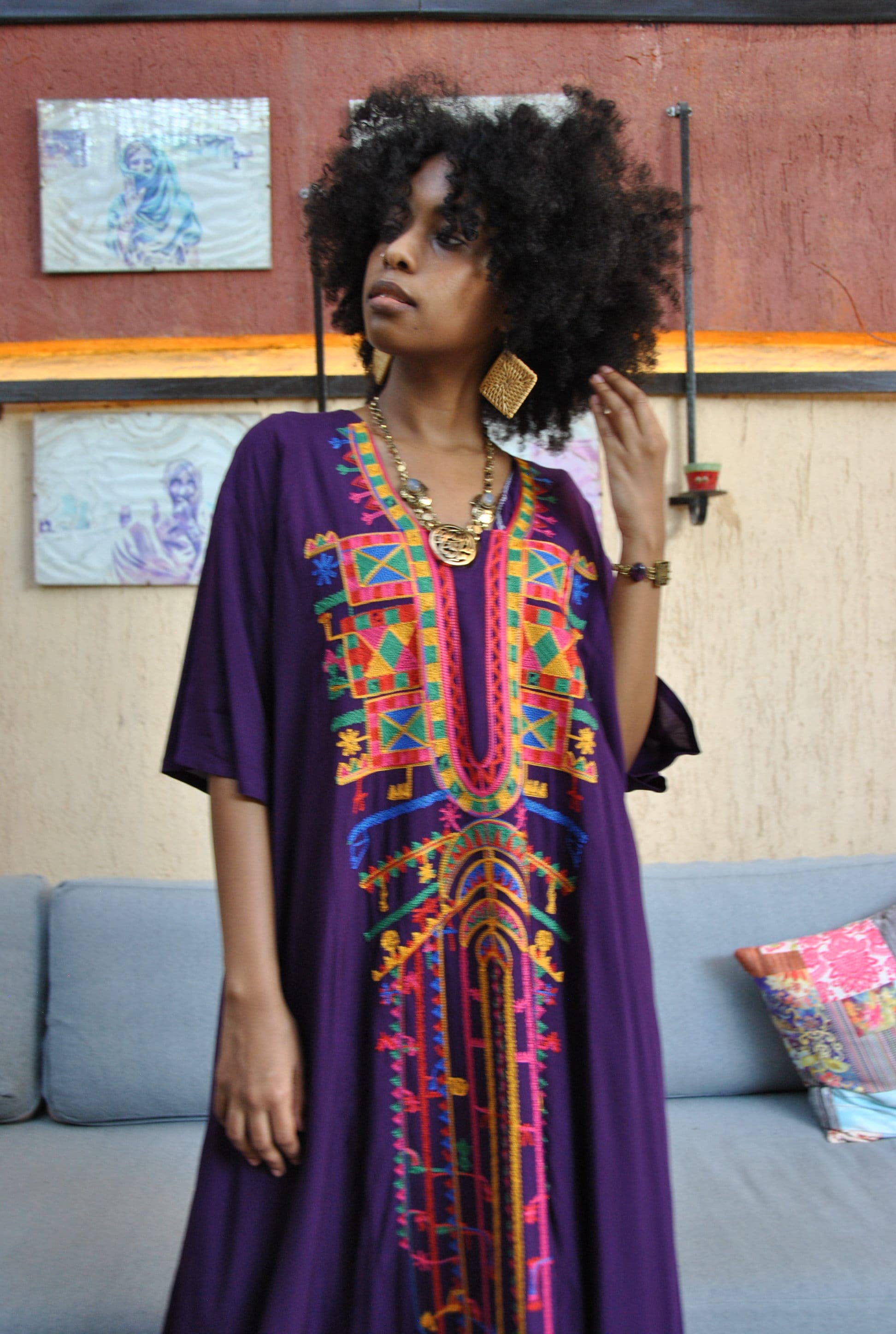 Purple Siwa Multicolor embroidered Kaftan dress, Cotton Kaftan, caftans for women, Summer Kaftan, Embroidered kaftan, caftans, Egyptian