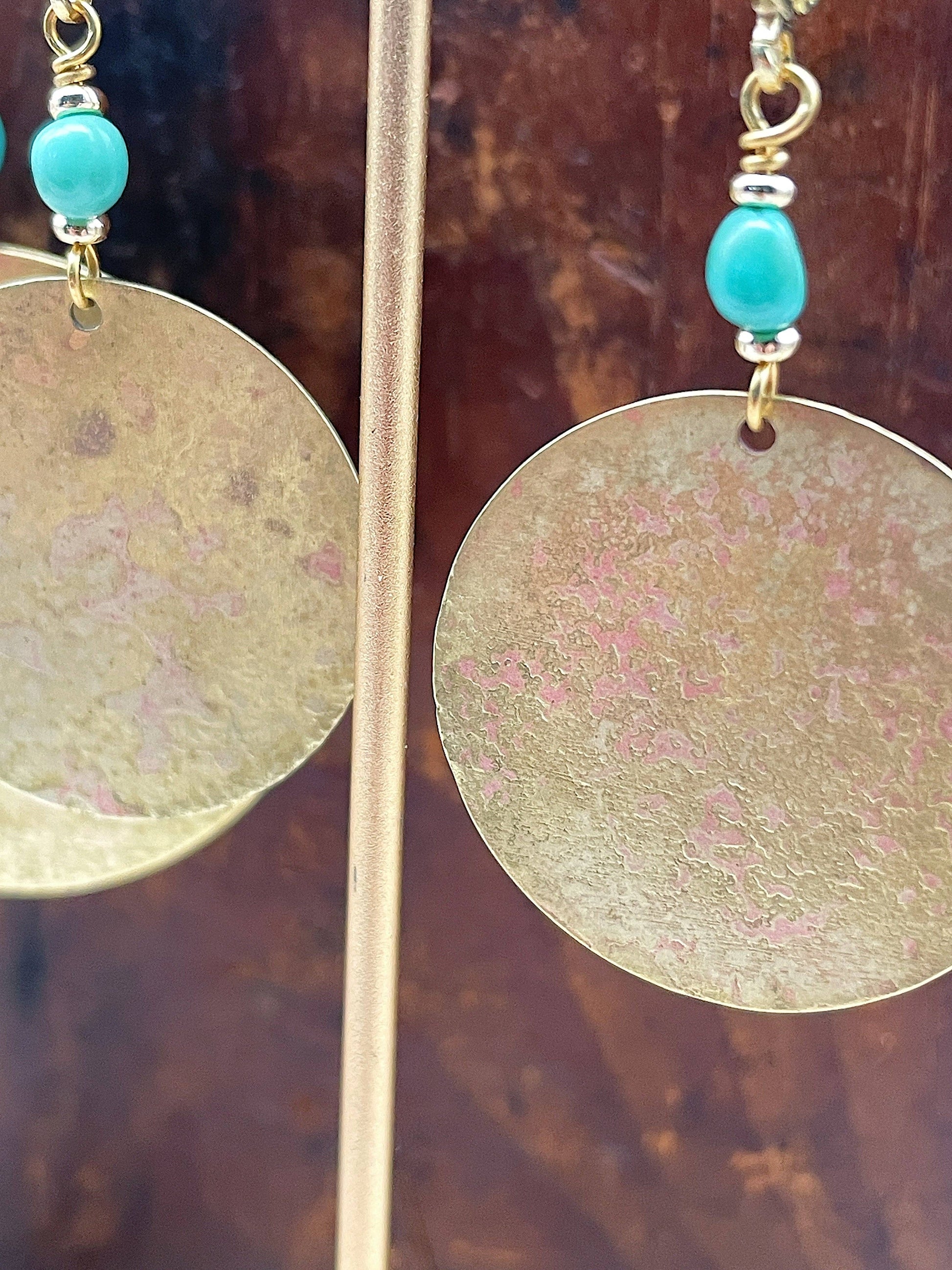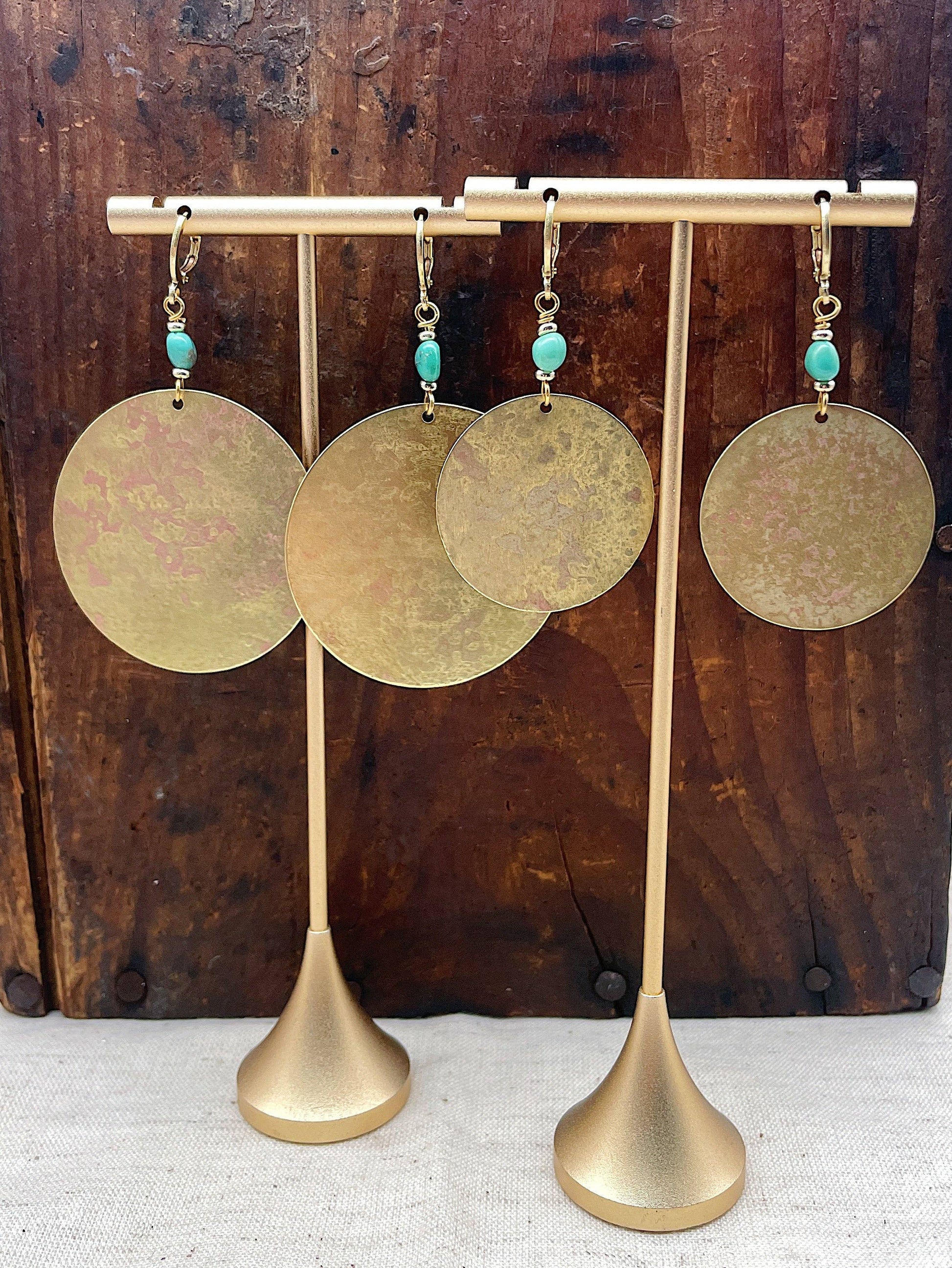 These unique earrings are made with recycled organic patinaed brass and paired with various stones on brass earwires.