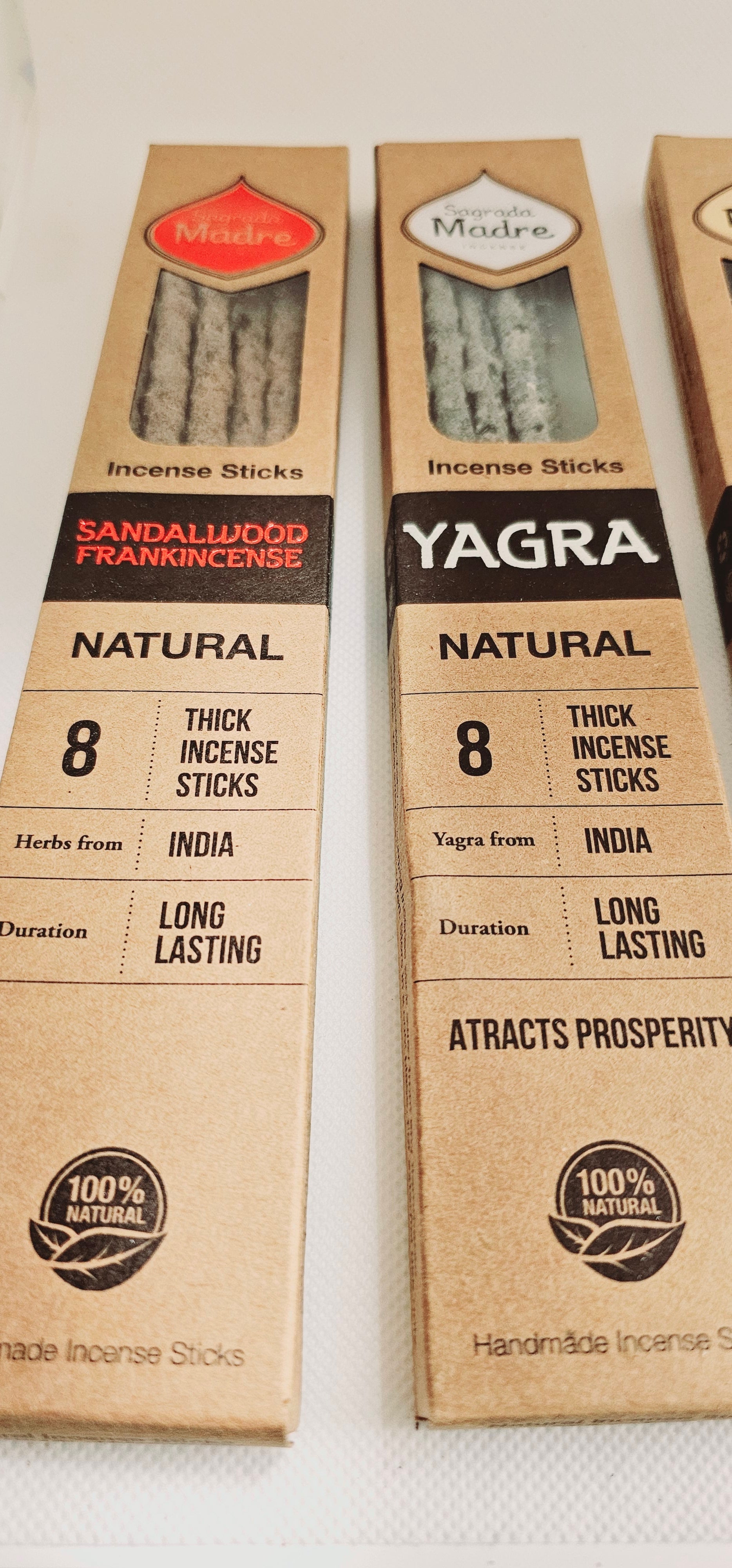 Copal, Frankincense, Myrrh, Sandlewood, or Yagra. Take your pick. 8 Stick in each box.