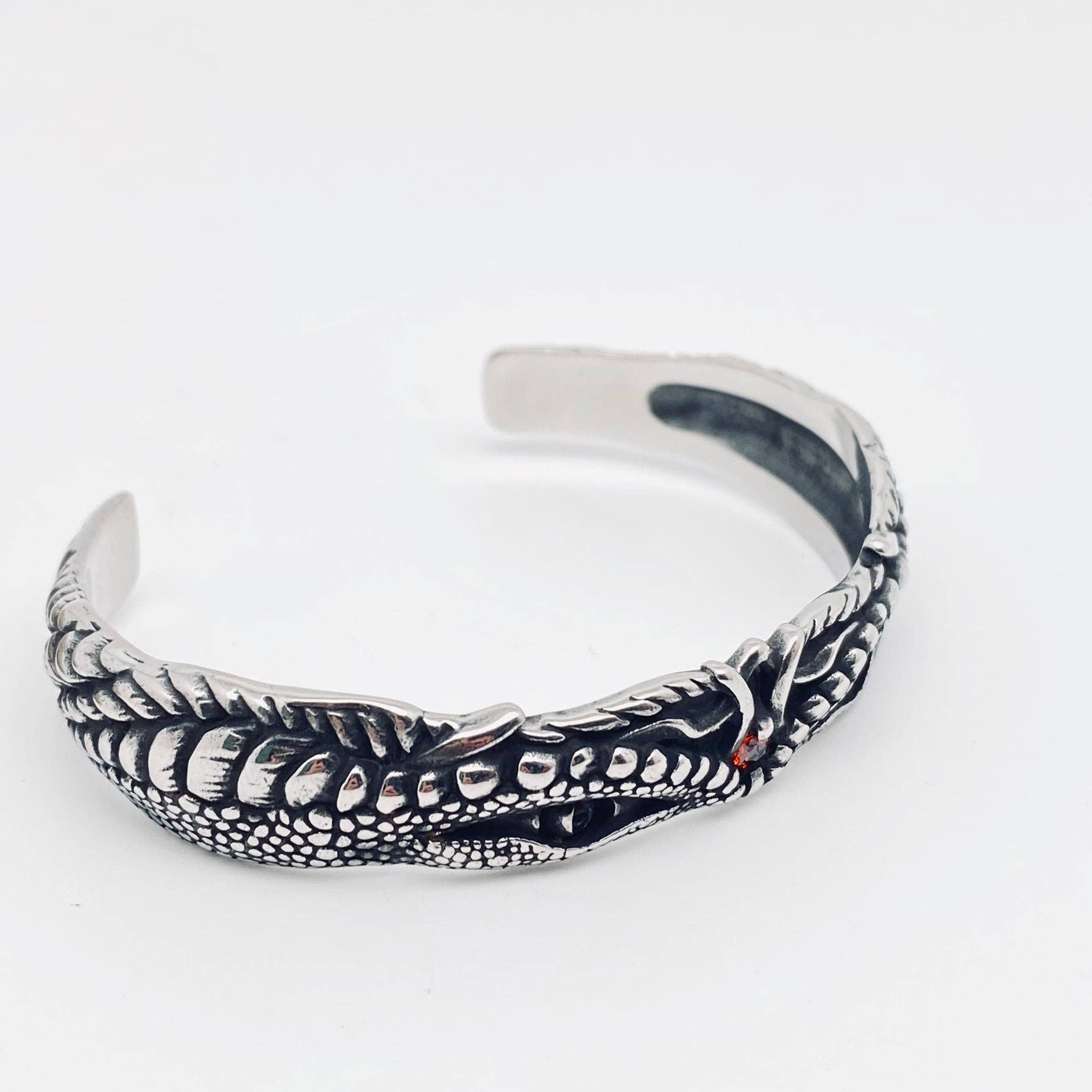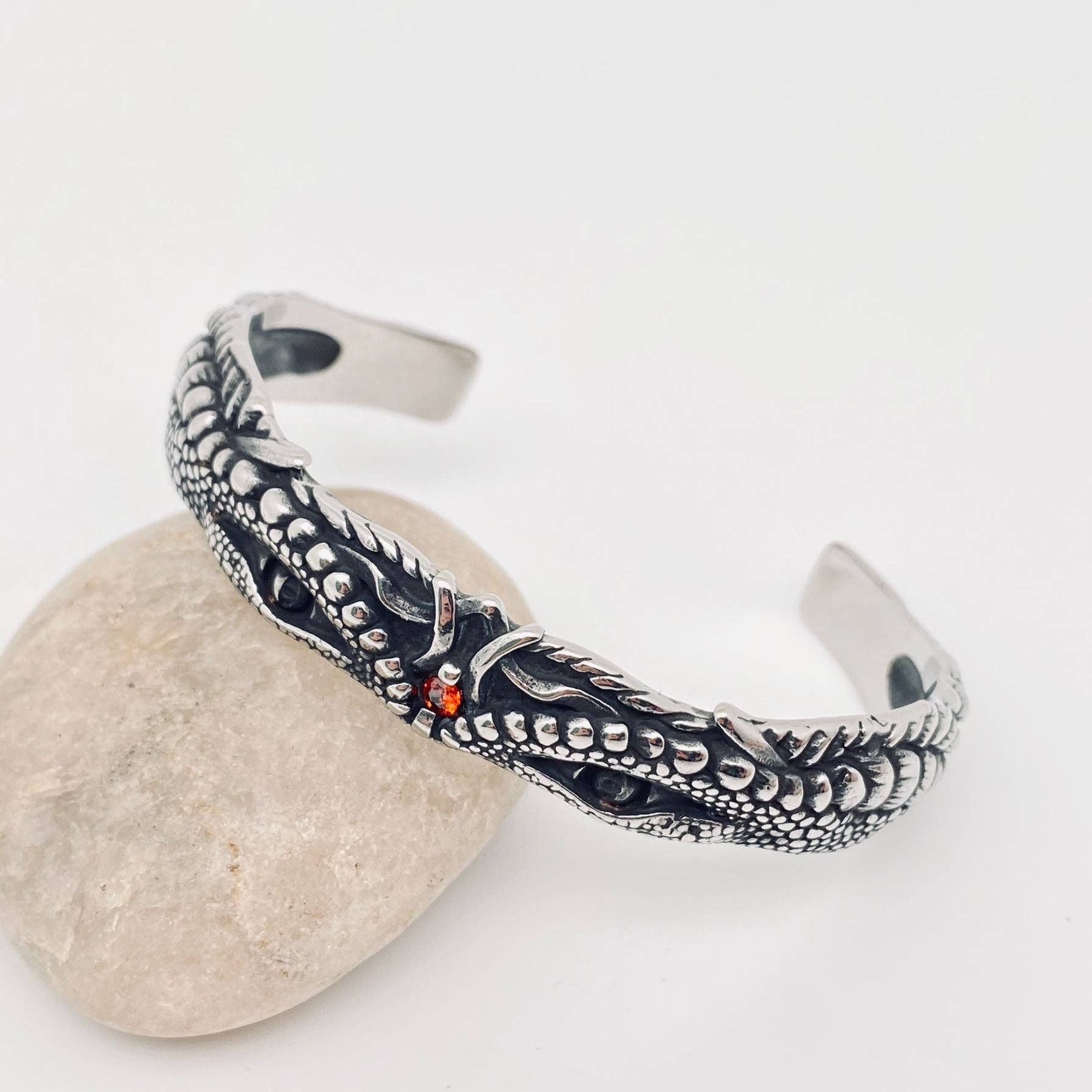 Snake Men's Stainless Steel C Shape Cuff Bangle