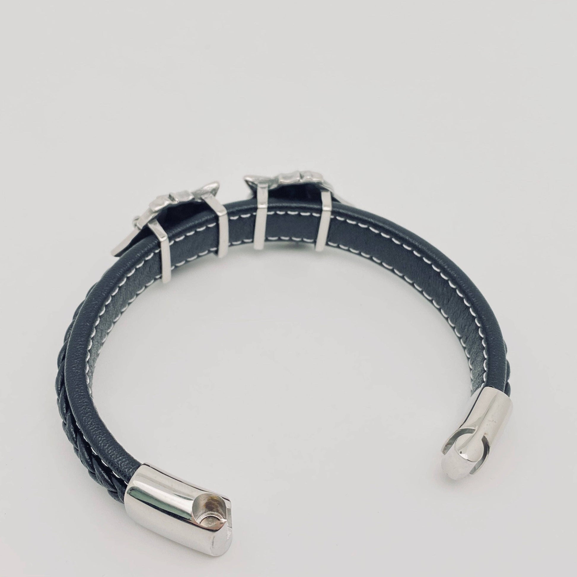 Stainless Steel Double Wolf Head Leather Bracelet 18CM
