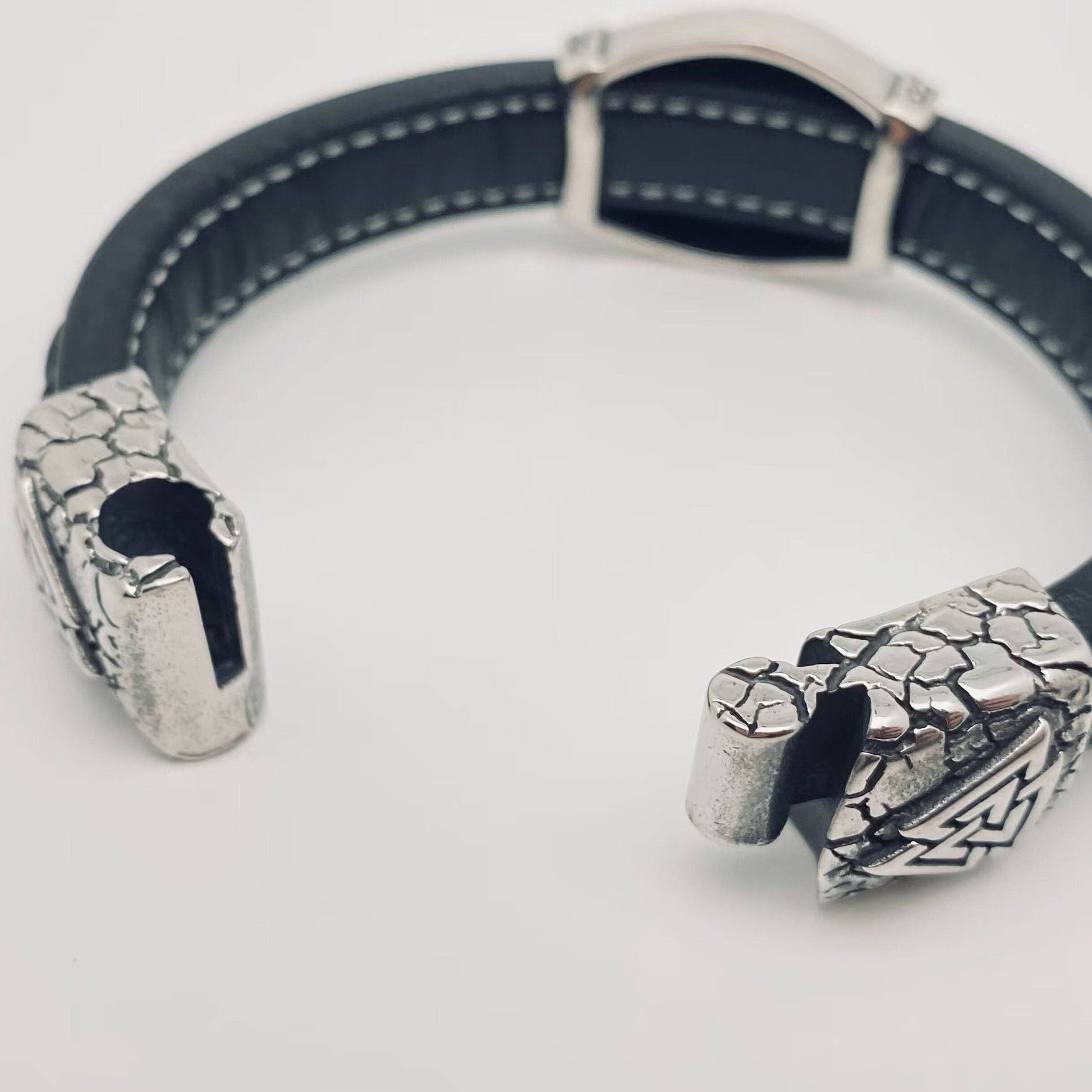 Viking Stainless Steel Men's Carved Leather Bracelet