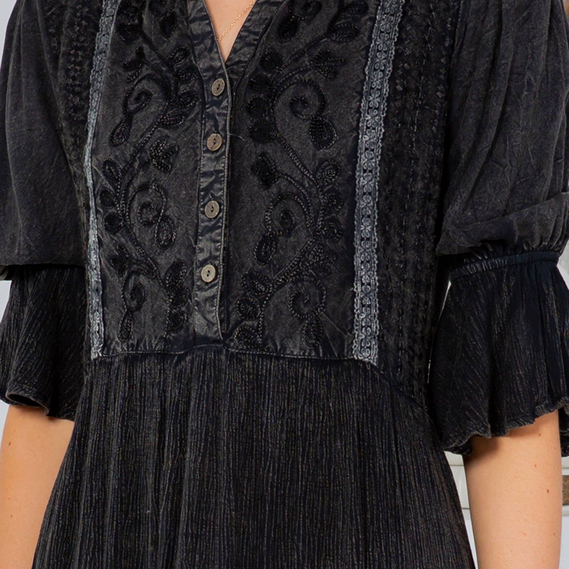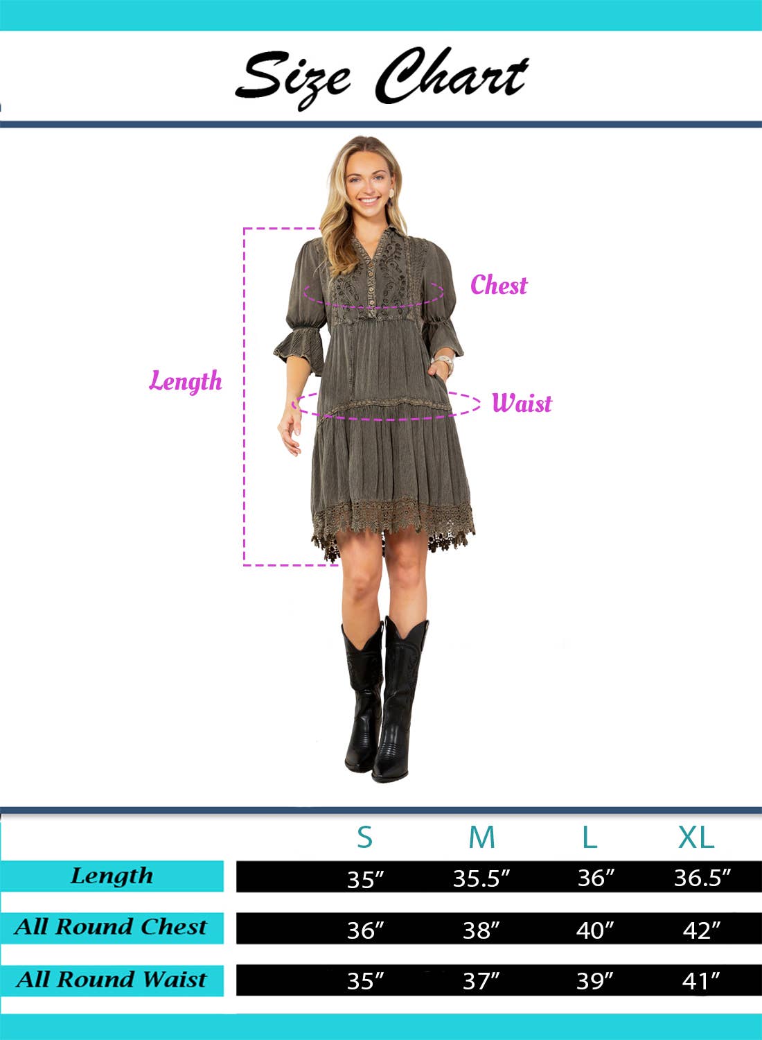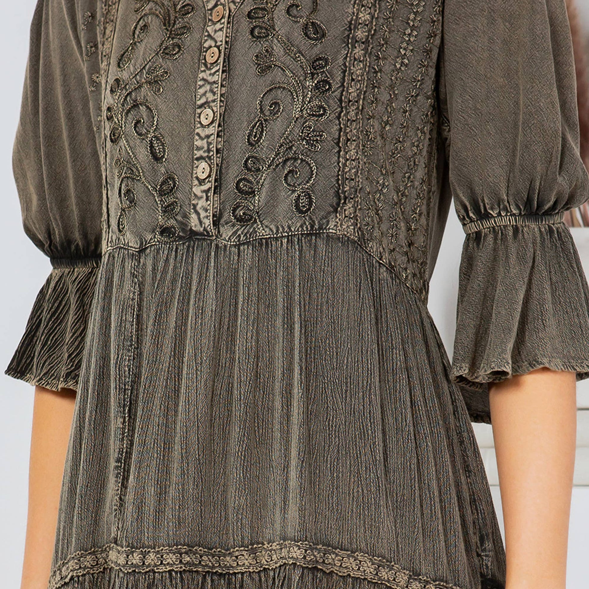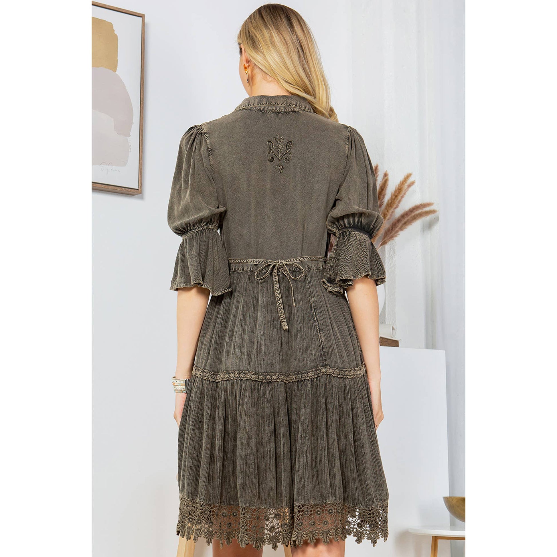 Vintage Romance: Stone-Washed Baby Doll Dress with V-Neck : Gravel / REGULAR (S-M-L-XL 1-2-2-1)