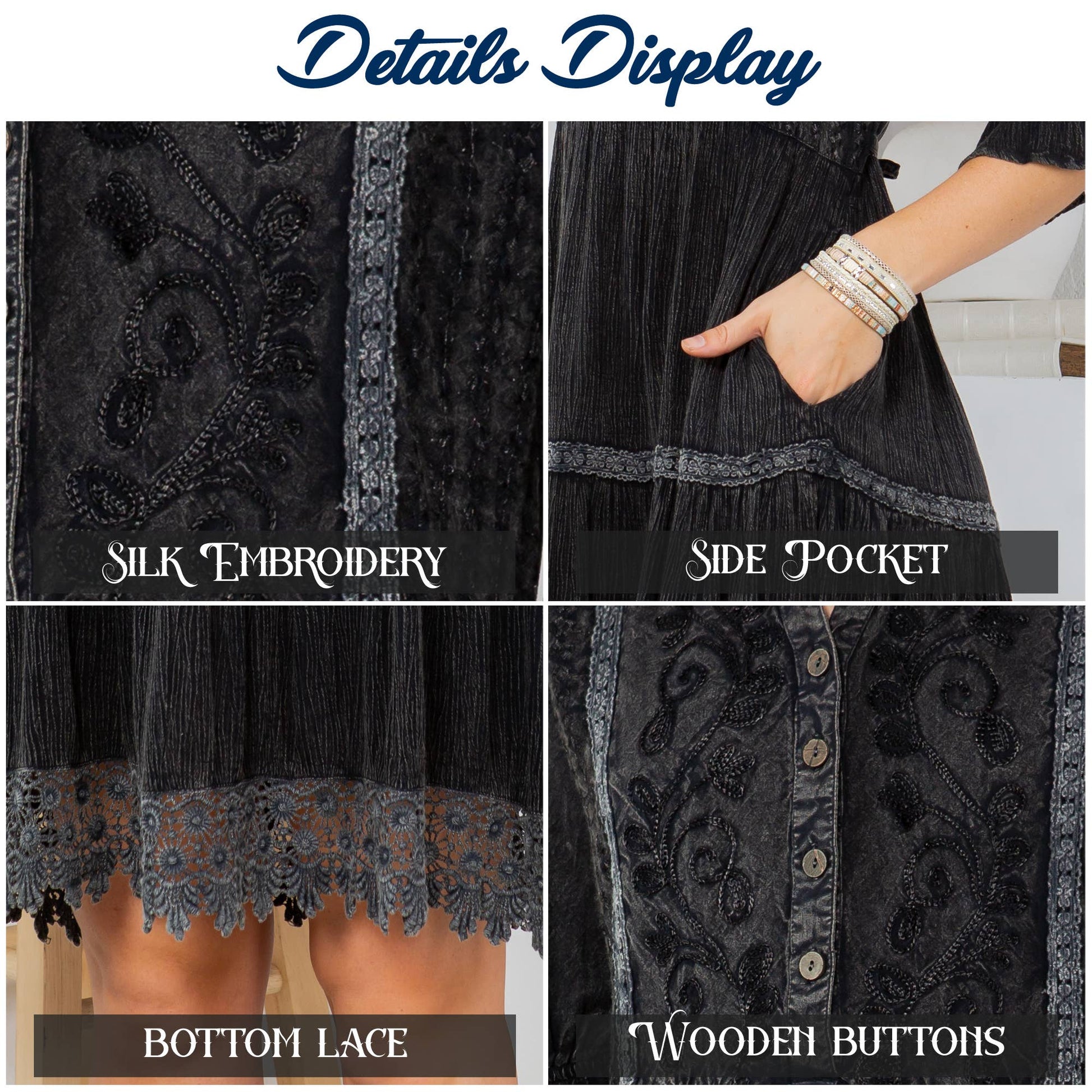 • Mix-matched combination of rayon embroidery, crepe, and delicate lace