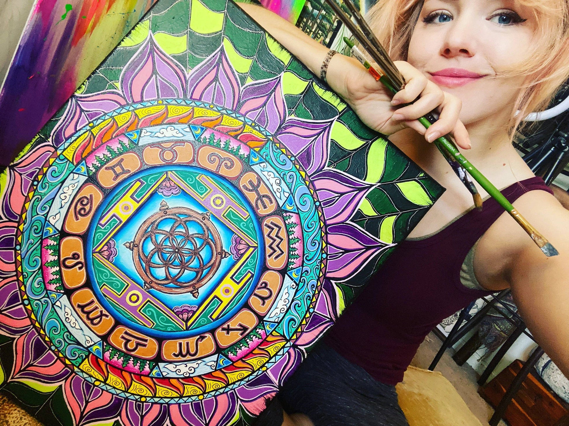 Elevate your festival or beach style with the Zodiac Bamboo Parasol – a beautifully crafted, UV blacklight reactive umbrella designed by Melanie Bodnar of Enlighten Clothing Co. This unique parasol features a Zodiac-inspired design originally painted by Melanie, bringing a cosmic and vibrant touch to your wardrobe.